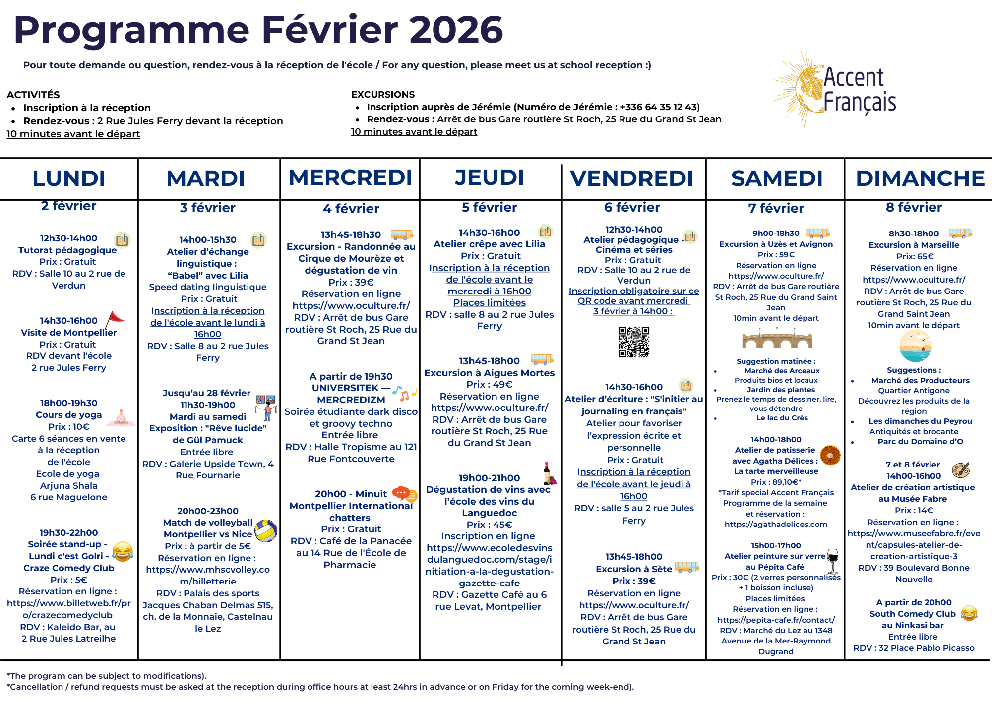 Activity programme from 2nd to 8th of February 2026