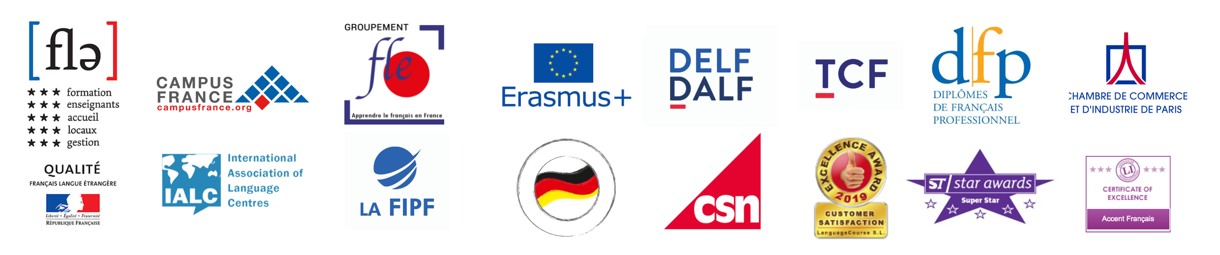 An inter-ministerial commission made up of the Ministry of Higher Education and Research, the Ministry of Culture and Communication, and the Ministry of Foreign and European Affairs issues this quality seal. The label is awarded for a period of 4 years on the basis of five quality criteria: teachers, training and teaching, reception and support, premises/safety/equipment and quality of management. Accent Français has been awarded this label since 2009